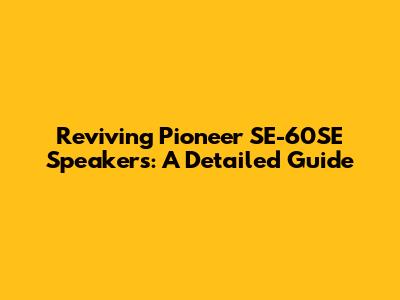Reviving Pioneer SE-60SE Speakers: A Detailed Guide