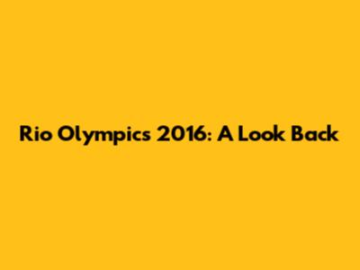 Rio Olympics 2016: A Look Back