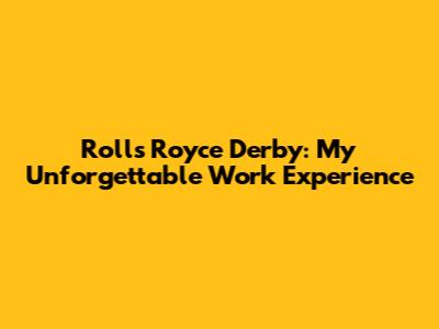 Rolls Royce Derby: My Unforgettable Work Experience