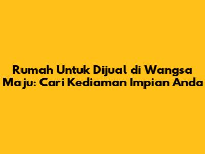 Rumah Untuk Dijual Di Wangsa Maju: Cari Kediaman Impian Anda