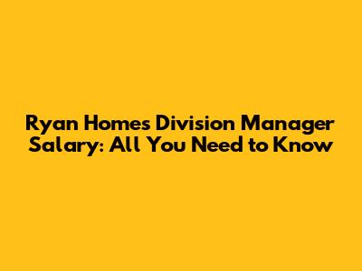 Ryan Homes Division Manager Salary: All You Need To Know