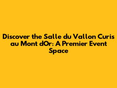 Hey guys! If you're on the hunt for the perfect venue to host your next event, look no further than the Salle du Vallon Curis au Mont d'Or. This stunning location is more than just a room; it's an experience waiting to happen. Nestled in the picturesque Mont d'Or region, this venue offers a unique blend of natural beauty and sophisticated ambiance, making it ideal for everything from intimate gatherings to larger celebrations. We're going to dive deep into what makes this place so special, covering its features, its charm, and why it should be at the top of your list.