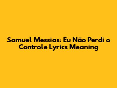 Samuel Messias: Eu Não Perdi O Controle Lyrics Meaning