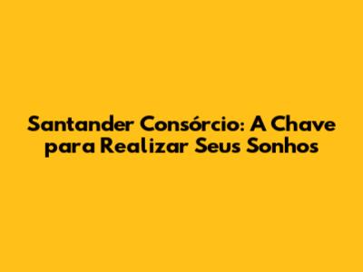 Santander Consórcio: Seu Guia Completo Para Conquistar Objetivos