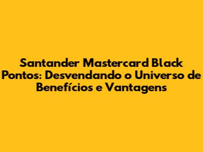 Ah, o Santander Mastercard Black Pontos! Se você está buscando um cartão de crédito que ofereça uma experiência premium, repleta de benefícios e vantagens exclusivas, este pode ser o seu match perfeito, meus amigos. Neste guia completo, vamos mergulhar fundo no universo do Santander Mastercard Black Pontos, explorando cada detalhe, desde os requisitos e anuidade até os benefícios, programas de pontos e dicas para aproveitar ao máximo tudo o que esse cartão tem a oferecer. Então, prepare-se para descobrir como o Santander Mastercard Black Pontos pode transformar suas compras em experiências incríveis!