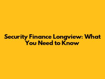 Security Finance Longview: What You Need To Know