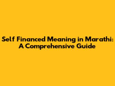 Self Financed Meaning In Marathi: A Comprehensive Guide