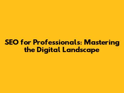 SEO For Professionals: Mastering The Digital Landscape