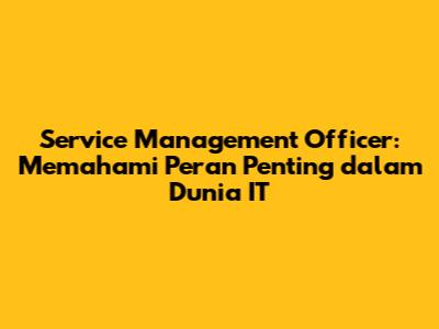 Service Management Officer: Pengertian & Peran Penting