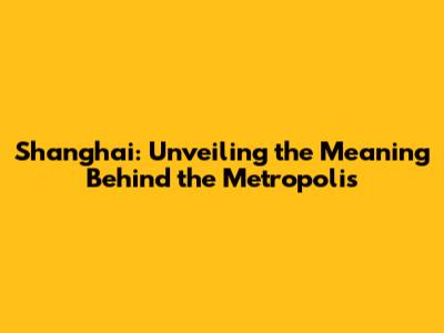 Shanghai: Unveiling The Meaning Behind The Metropolis