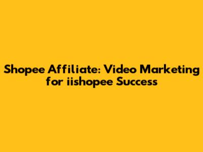 Shopee Affiliate: Video Marketing For Iishopee Success