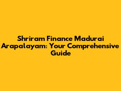 Shriram Finance In Madurai Arapalayam: Your Guide