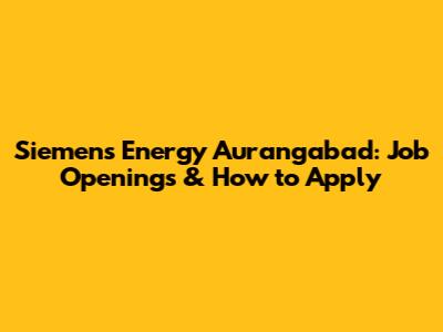 Siemens Energy Aurangabad: Job Openings & How To Apply