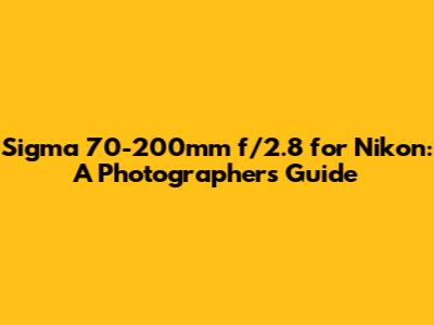 Sigma 70-200mm F/2.8 For Nikon: A Photographer's Guide