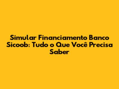 Simular financiamento Banco Sicoob é o primeiro passo para realizar seus sonhos, seja a casa própria, um carro novo ou investir em seu negócio. Mas, com tantas opções e informações disponíveis, como saber por onde começar? Neste guia completo, vamos desvendar todos os segredos sobre a simulação de financiamento no Sicoob, desde as diferentes modalidades até as dicas para conseguir as melhores condições. Então, prepare-se para mergulhar no universo do crédito cooperativo e descobrir como o Sicoob pode te ajudar a alcançar seus objetivos financeiros.