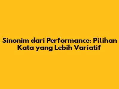 Sinonim Dari Performance: Pilihan Kata Yang Lebih Variatif