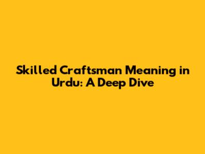Skilled Craftsman Meaning In Urdu: A Deep Dive