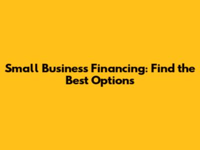 Small Business Financing: Find The Best Options