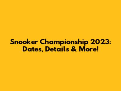 Snooker Championship 2023: Dates, Details & More!