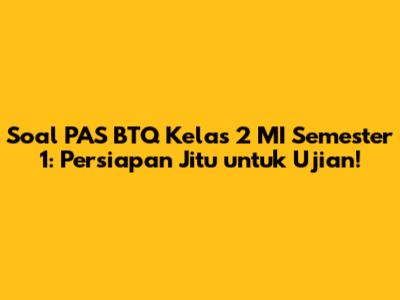 Hey guys! Siapa di sini yang lagi semangat belajar BTQ (Baca Tulis Quran) buat persiapan Penilaian Akhir Semester (PAS) di kelas 2 MI (Madrasah Ibtidaiyah) semester 1? Wah, pas banget! Artikel ini emang khusus buat kalian yang pengen latihan soal PAS BTQ dan pengen dapet nilai terbaik. Kita akan bahas soal-soal yang sering muncul, lengkap dengan pembahasan yang mudah dipahami. Jadi, siap-siap ya, karena kita akan belajar seru dan asyik!