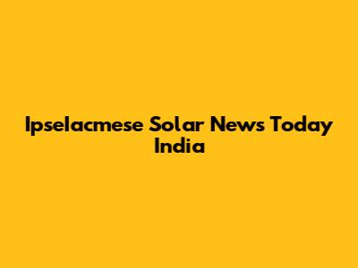 Solar News India: IpseIacmese Updates Today