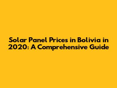 Solar Panel Prices In Bolivia In 2020: A Comprehensive Guide