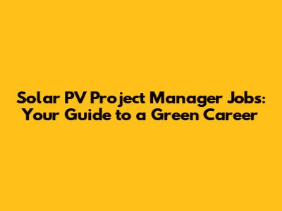 Solar PV Project Manager Jobs: Your Guide To A Green Career