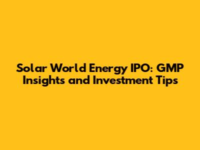 Solar World Energy IPO: GMP Insights And Investment Tips