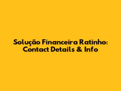 Solução Financeira Ratinho: Contact Details & Info