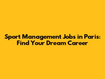 Sport Management Jobs In Paris: Find Your Dream Career