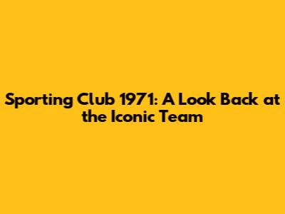 Sporting Club 1971: A Look Back At The Iconic Team