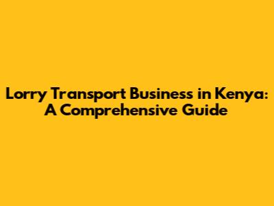 Start A Lorry Transport Business In Kenya: A Comprehensive Guide