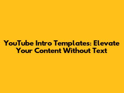 Stunning YouTube Intro Templates: Text-Free & Ready To Impress