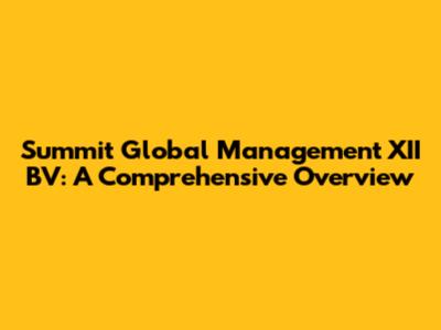 Summit Global Management XII BV: Everything You Need To Know