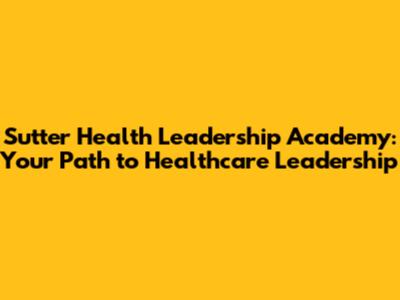Sutter Health Leadership Academy: Your Path To Healthcare Leadership