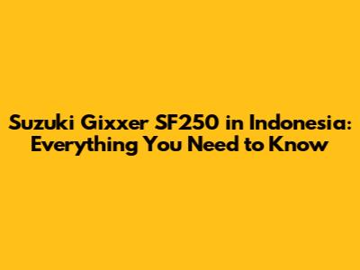 Suzuki Gixxer SF250 In Indonesia: Price, Specs, And More