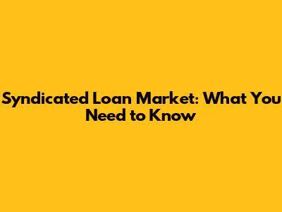 Syndicated Loan Market: What You Need To Know