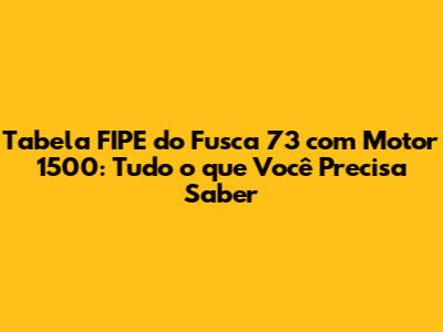 Tabela FIPE Do Fusca 73 Com Motor 1500: Guia Completo E Atualizado