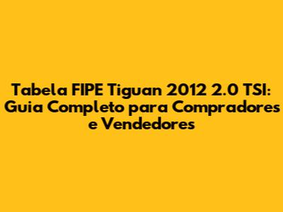 Tabela FIPE Tiguan 2012 2.0 TSI! E aí, pessoal! Se você está de olho numa Tiguan 2012 2.0 TSI, ou pensando em vender a sua, este guia é para você. A gente sabe que a tabela FIPE é a bíblia quando o assunto é carro usado, né? Então, preparei um conteúdo completo para te dar todas as informações sobre preços, valores e dicas para você fazer um bom negócio. Vamos nessa?