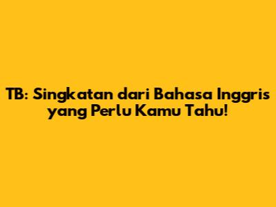 Intinya, "TB" adalah singkatan serbaguna yang penting untuk diketahui. Jadi, jangan lupa untuk selalu memperhatikan konteks dan audiensmu saat menggunakan singkatan ini. Dengan begitu, kamu akan semakin percaya diri dalam berkomunikasi menggunakan bahasa Inggris.