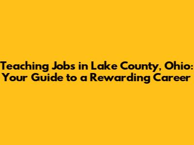 Teaching Jobs In Lake County, Ohio: Your Guide To A Rewarding Career