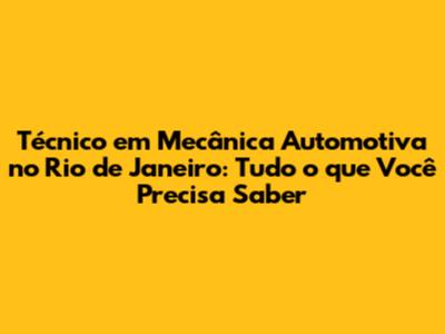 O mercado de trabalho para técnicos em mecânica automotiva no Rio de Janeiro é aquecido, com diversas oportunidades de emprego. As principais áreas de atuação são: