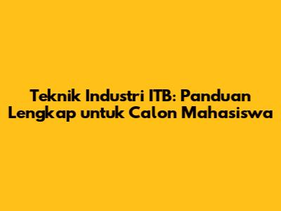 Teknik Industri (TI) di Institut Teknologi Bandung (ITB) adalah salah satu jurusan yang paling diminati di Indonesia. Buat kalian yang tertarik dengan dunia TI, artikel ini bakal jadi panduan lengkap. Kita bakal bahas mulai dari apa itu Teknik Industri, kurikulumnya di ITB, prospek kerjanya, sampai tips-tips buat kalian yang pengen kuliah di sini. Yuk, simak!