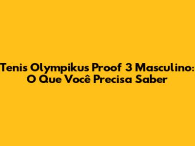 Tenis Olympikus Proof 3 Masculino: O Que Você Precisa Saber