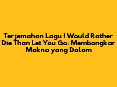 Terjemahan lagu 'I Would Rather Die Than Let You Go' - sebuah frasa yang kuat dan sarat emosi, mengisyaratkan komitmen yang mendalam dan intensitas perasaan yang sulit diukur. Lagu ini, yang sering kali hadir dalam berbagai versi dan interpretasi, menyentuh tema-tema universal seperti cinta, kehilangan, dan pengorbanan. Mari kita selami lebih dalam makna di balik lirik yang menggugah ini, memahami nuansa emosional yang terkandung di dalamnya, dan menjelajahi bagaimana pesan tersebut disampaikan melalui berbagai elemen musik. Dalam artikel ini, kita akan membahas terjemahan lagu 'I Would Rather Die Than Let You Go' secara rinci, mengungkap lapisan-lapisan makna yang mungkin tersembunyi bagi pendengar awam. Kita akan melihat bagaimana bahasa digunakan untuk menyampaikan perasaan cinta yang membara, rasa takut kehilangan, dan tekad yang tak tergoyahkan untuk mempertahankan hubungan tersebut, bahkan jika itu berarti menghadapi kesulitan yang paling ekstrem. Mari kita mulai perjalanan kita untuk memahami lebih dalam lagu yang memilukan ini.