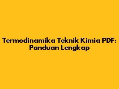 Termodinamika Teknik Kimia PDF: Panduan Lengkap