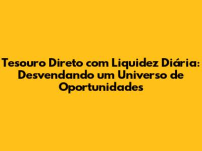 Tesouro Direto Com Liquidez Diária: Seu Guia Completo!