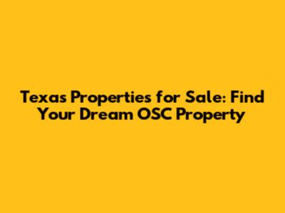 Texas Properties For Sale: Find Your Dream OSC Property