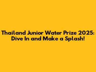 Hey everyone! Are you ready to make a real difference? The Thailand Junior Water Prize 2025 is your chance to shine and contribute to a sustainable future. This amazing initiative empowers young people like you to tackle critical water challenges and develop innovative solutions. Whether you're a budding scientist, a passionate environmentalist, or just someone who cares about our planet, this is the perfect opportunity to get involved. We're talking about real-world impact, amazing experiences, and the chance to make a positive splash in the world of water conservation. So, let’s dive in and explore everything you need to know about the Thailand Junior Water Prize 2025!