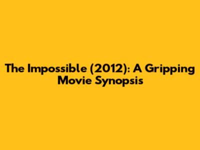 The Impossible (2012): A Gripping Movie Synopsis